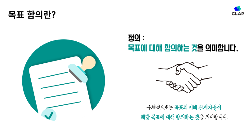 - 정의 : 목표에 대해 합의하는 것을 의미합니다.