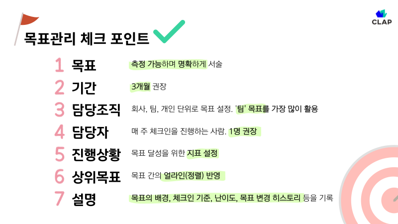 CLAP의 목표관리는 다음과 같이 작성해보세요.