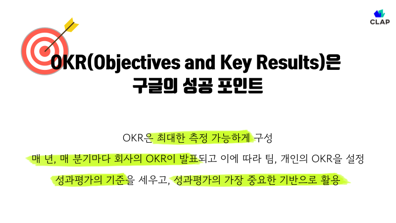 성과평가를 위해서는 명확한 기준을 세우는 것이 첫 단추입니다. 구글에서는 OKR을 통해 성과평가의 기준을 세우고, 성과평가의 가장 중요한 기반으로 활용합니다.